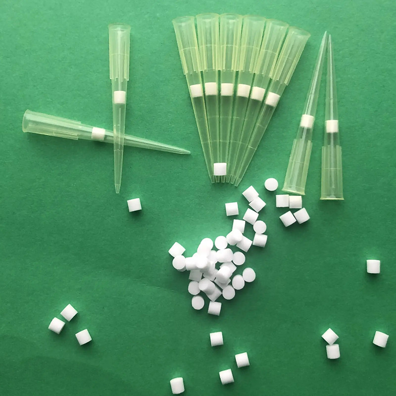 LabGo pipette tip filter cartridges are made of ultra-high molecular weight polyethylene, which is hydrophobic, compact, durable, lightweight, can withstand high filtration pressure, non-toxic, odorless, has good corrosion resistance to acids and alkaline solvents, blocks aerosols, preventing liquids and liquid vapors from contaminating the inside of the pipette gun.
